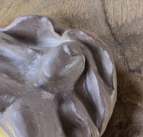 Afmeting: 10 x 8 cm, max 2,5 cm hoog, buik diameter 5 cm.