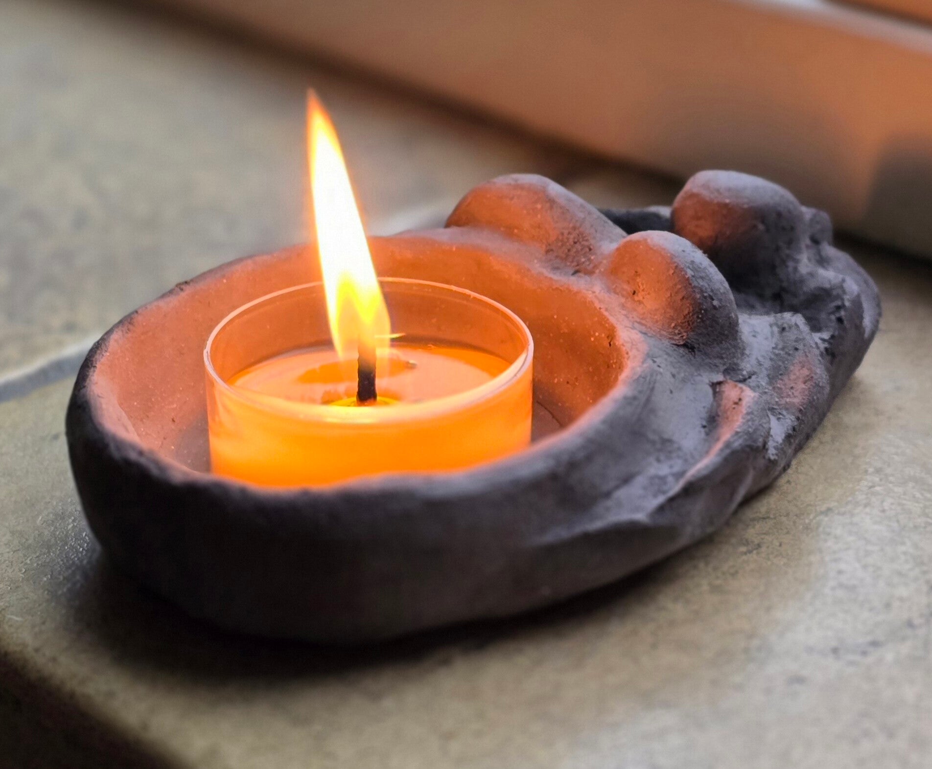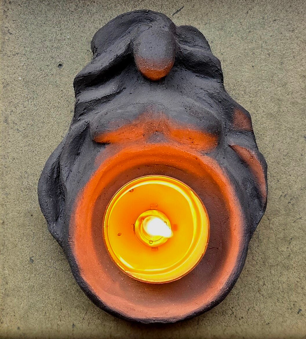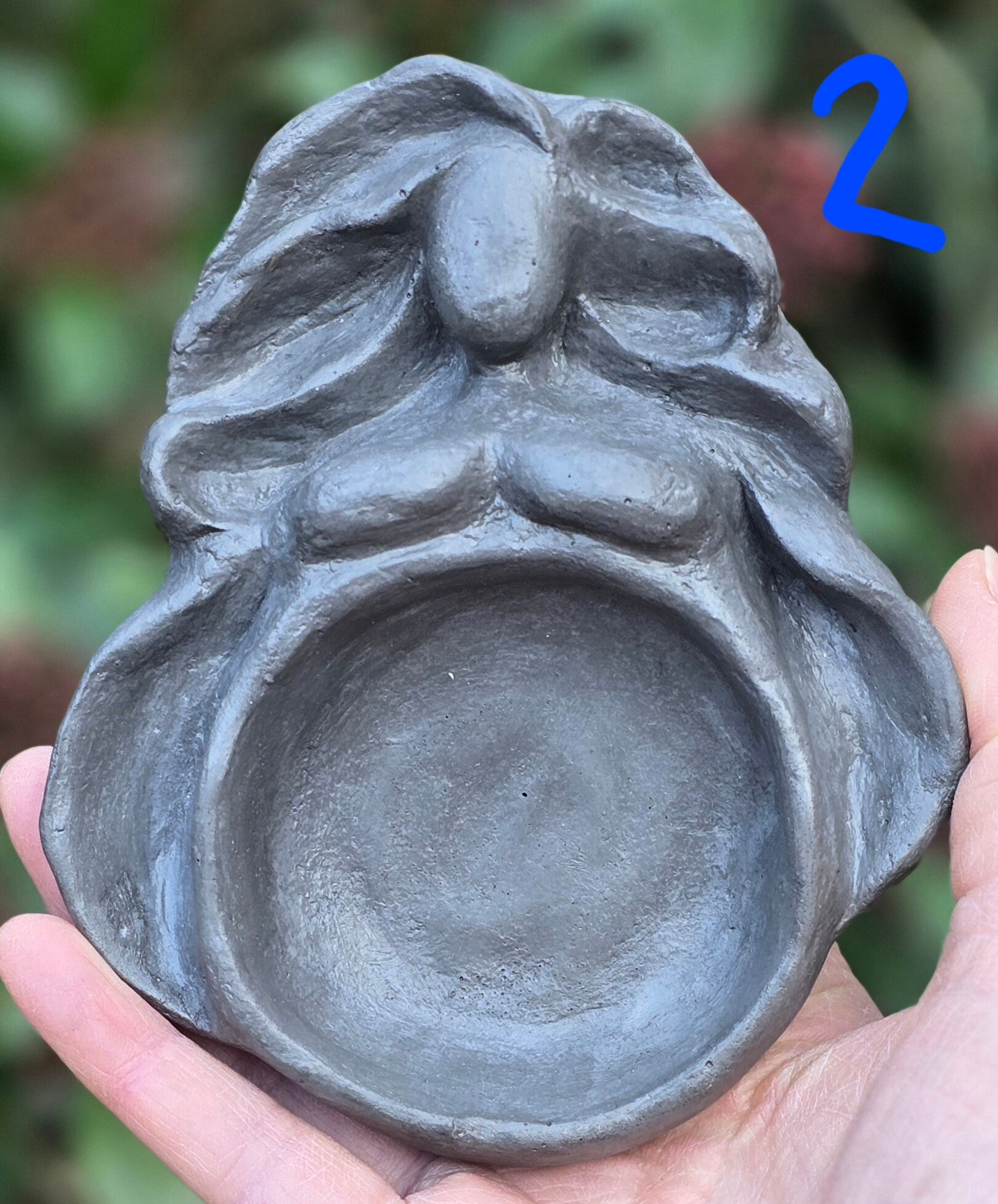 Haar donkere buik is een schaal, een altaar. Prachtig om er bijvoorbeeld een bijenwas theelichtje in te branden. Het originele beeldje is met de hand gevormd in natuurklei. Vervolgens per stuk gegoten in een zelfgemaakte mal en liefdevol met de hand verder afgewerkt. Daardoor is elk beeldje uniek met een eigen energie. Grijs tot donkerder grijs van kleur. De beeldjes zijn van fijn steen-cement en robuuster dan de gipsen kleinere beeldjes. Met een mat transparante lak ter bescherming.